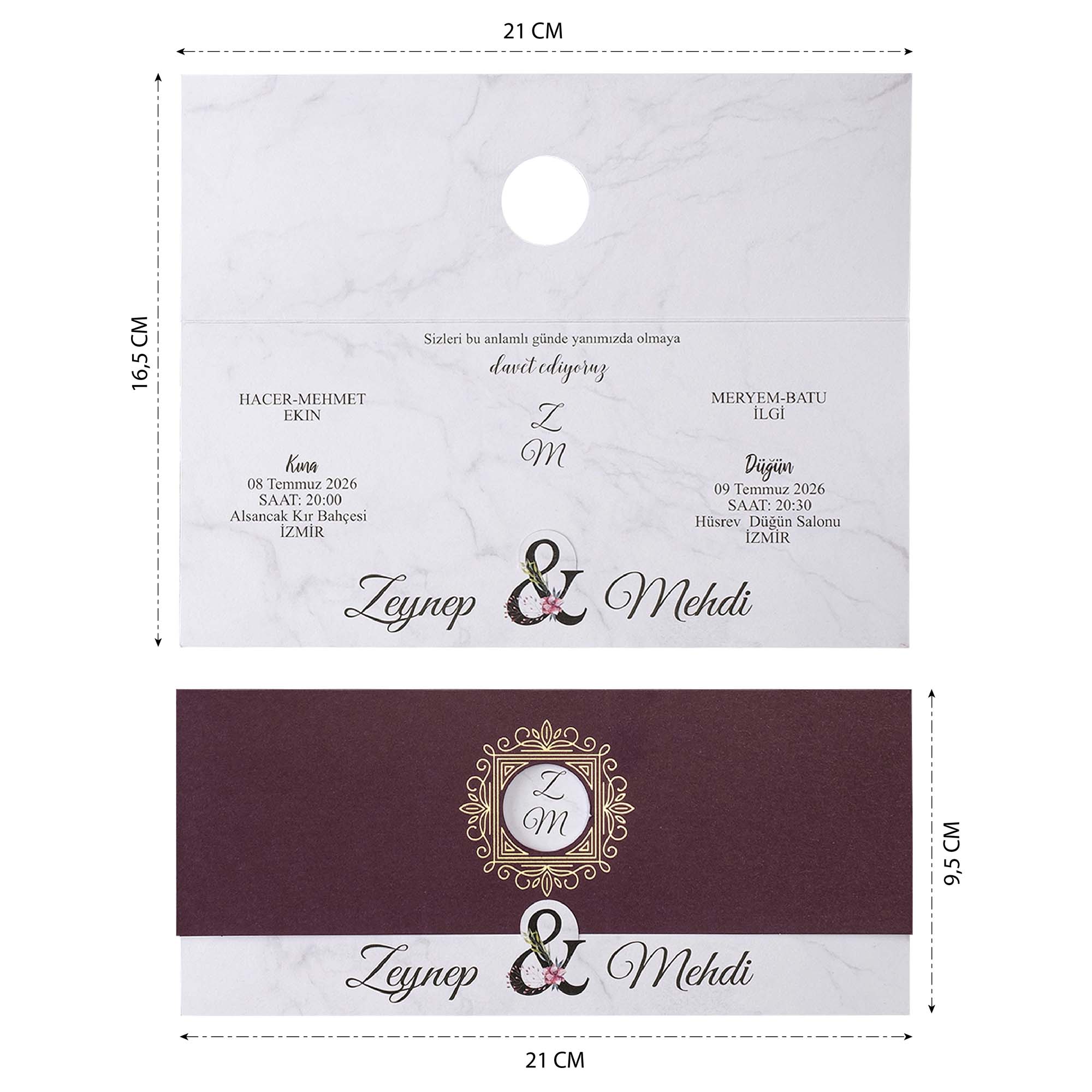 - Davetiyenin katlama/birleştirme ve zarflama işlemi müşteriye aittir.